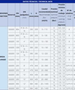 - Presión nominal 6 o 16 Bar
